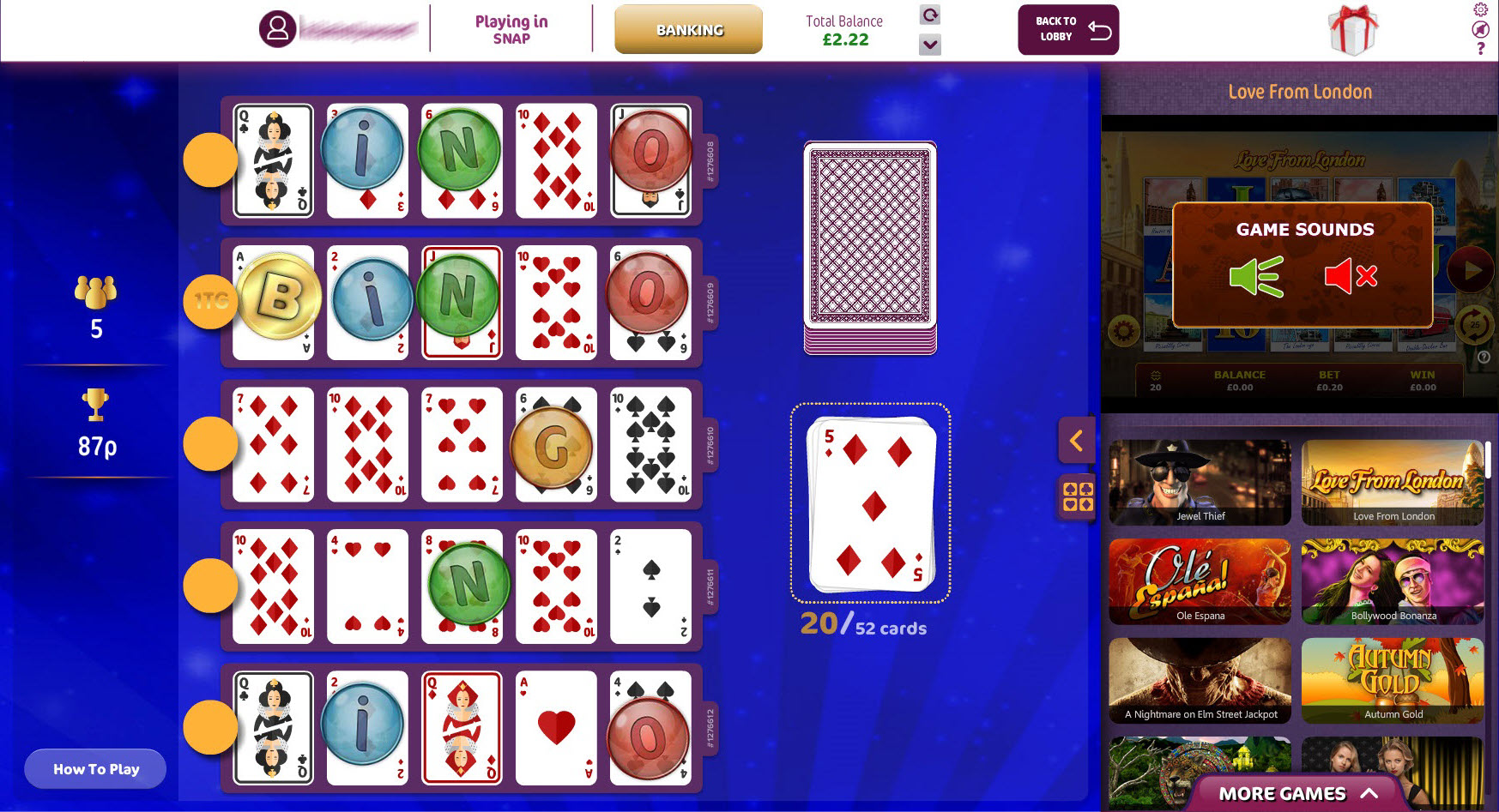 52-5 bingo is a relatively new version of the classic bingo game. Unlike 90-ball and 52-ball bingo, the game is played with playing cards instead of numbered bingo balls.