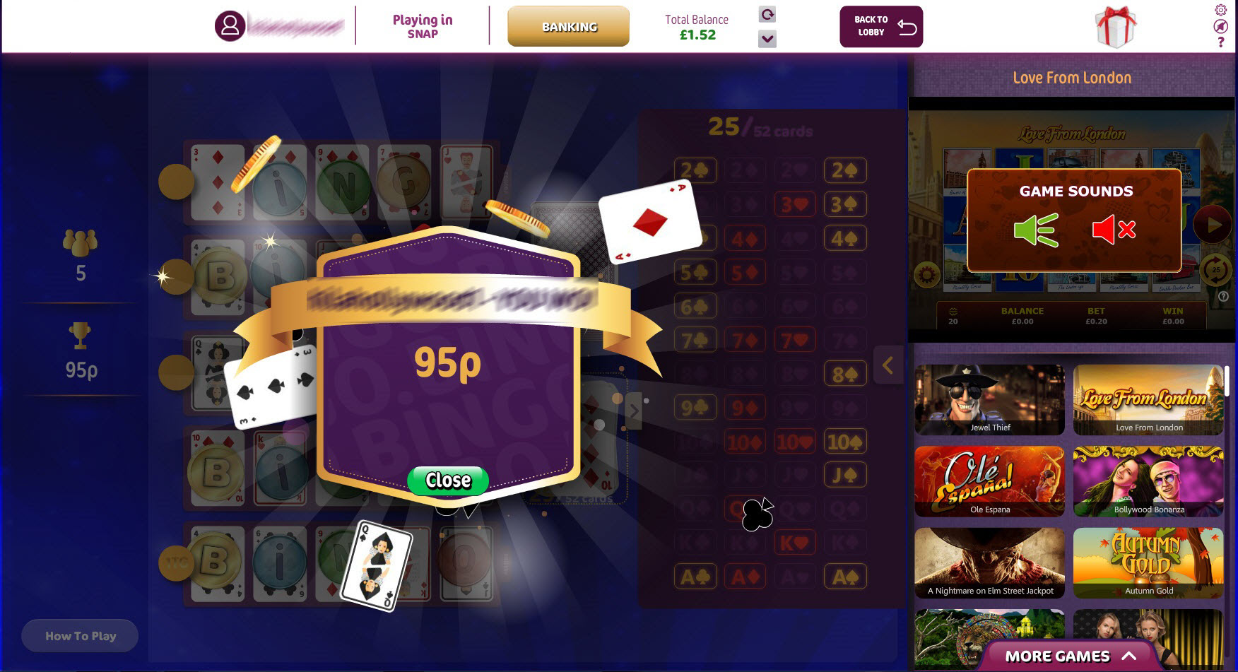 If you weren't in the room in time to see the winning message, don't worry, you'll still be awarded your wins and you can see details of previous games in the "game history" section of the "my account" menu.